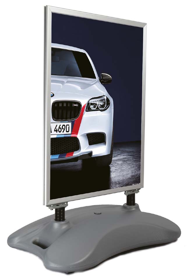 Σταντ από αλουμίνιο διπλής όψης, με βάση νερού 26lt και ελατήρια για μέγιστη αντοχή στον άερα. Η καλύτερη λύση για εξωτερικό χώρο.