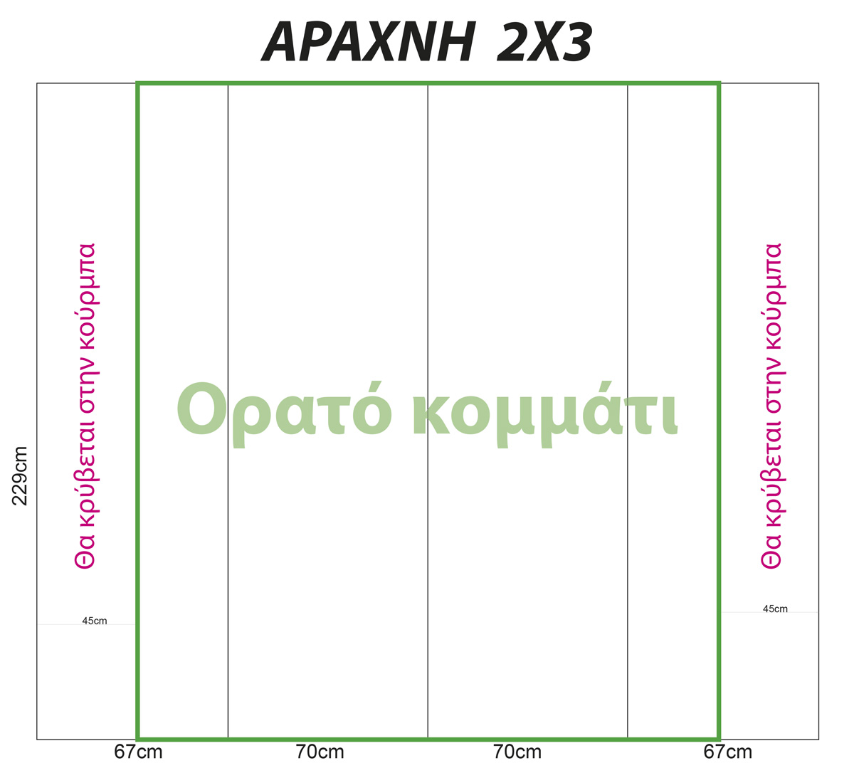 Διαστάσεις κεντρικών φύλλων: 70cm x 229cm