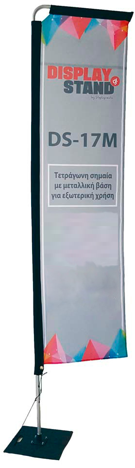 Μπάνερ Σημαία με σωλήνα αλουμινίου, μεταλλική βάση βαρέος τύπου. Με μηχανισμό περιστροφής της εκτύπωσης για μέγιστη αντοχή στον αέρα.